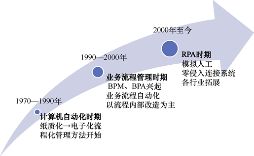 进入21世纪后,欧美发达国家已经建立起较为完善和便捷的基础设施,习惯使用各种现代化的软件工具(如Office和ERP等)来提升日常工作效能。同时,随着全球化时代的到来,各个行业的人力成本越来越高,欧美等国家的企业也开始寻求降本增效的方法。自2003年Blue Prism发布了第一款真正意义上的RPA产品开始,RPA概念便逐渐在全球流行起来。