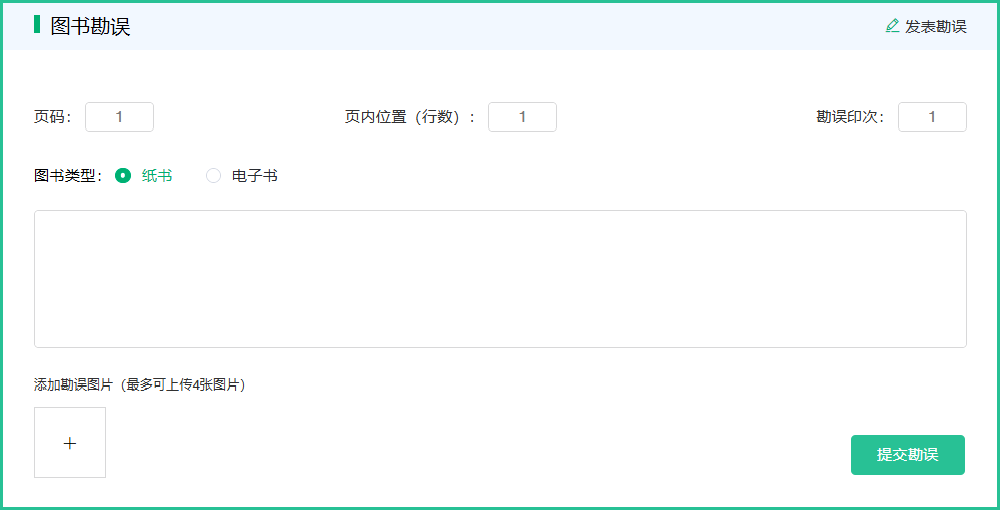 当您发现错误时,请登录异步社区(https://www.epubit.com),按书名搜索,进入本书页面,点击“发表勘误”,输入勘误信息,点击“提交勘误”按钮即可(见下页图)。本书的作者和编辑会对您提交的勘误信息进行审核,确认并接受后,您将获赠异步社区的100积分。积分可用于在异步社区兑换优惠券、样书或奖品。