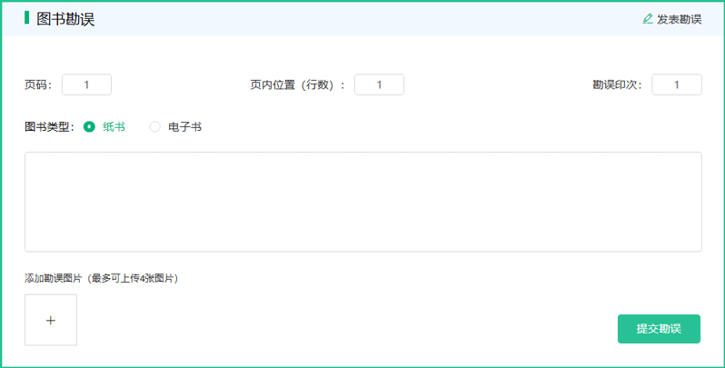 当您发现错误时,请登录异步社区(https://www.epubit.com),按书名搜索,进入本书页面,单击“发表勘误”链接,输入勘误信息,单击“提交勘误”按钮(见下图)即可。本书的作者和编辑会对您提交的勘误进行审核,确认并接受后,您将获赠异步社区的100积分。积分可用于在异步社区兑换优惠券、样书或奖品。