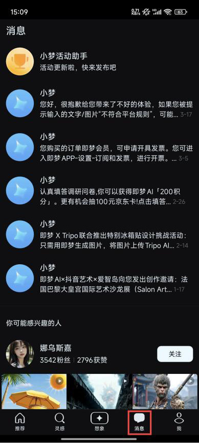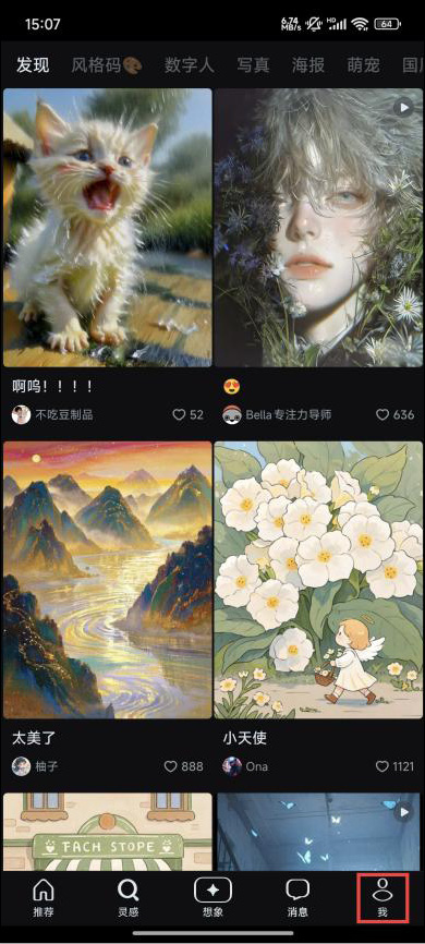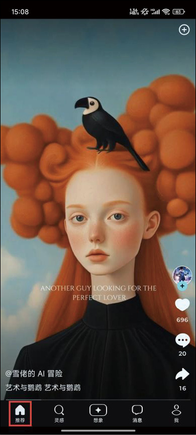 打开即梦AI手机版,点击“我”按钮,如图1-2-1所示。进入即梦AI的登录界面,如图1-2-2所示。可以通过抖音登录,登录成功之后进入即梦AI的“推荐”界面,如图1-2-3所示。