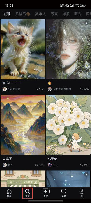 点击“灵感”按钮,进入图1-2-4所示的“灵感”界面。此界面设有丰富多样的分类,涵盖数字人、写真、海报、萌宠等。在这里,各类创意元素汇聚一堂,助力用户开启充满想象力的创作之旅。