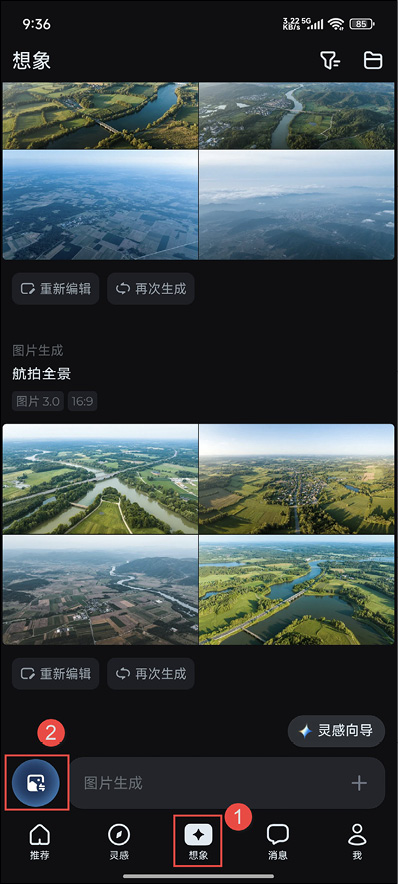点击“想象”按钮,进入“想象”界面,点击左侧的