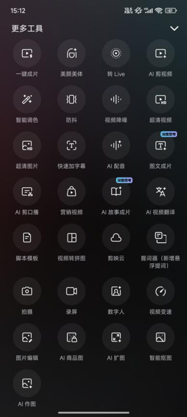 剪映支持视频切割、变速、倒放、转场等基础剪辑功能;提供多种滤镜、特效、字幕样式和字体,还有智能抠像、画布设置等功能;具备变声功能,可改变视频中的声音。此外,还有图文成片、创作脚本、提词器、录屏等特色功能。作为国内领先的视频剪辑工具,剪映持续深化AI技术与创作场景的融合。