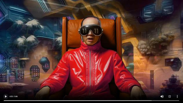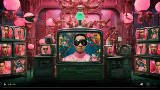 京东家电携手二手玫瑰乐队做“双十一”营销,让其进军带货领域。“玫瑰”和“没贵”的谐音,使品牌信息点传递起来清晰又有梗。而短片中,利用AI改编的二手玫瑰乐队传唱度最高的歌曲《我要开花11.11焕新版》MV,更是项目的高潮部分与点睛之笔。视频画面如图1-5-5和图1-5-6所示。
