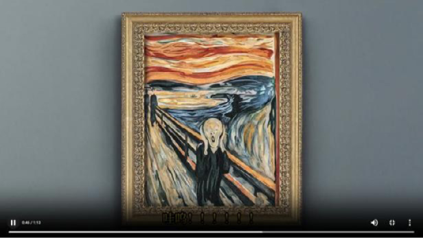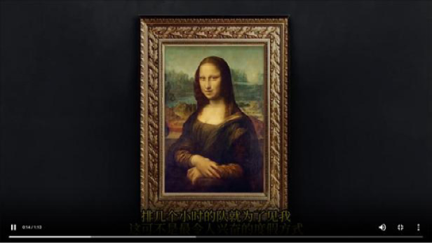 短片中,蒙娜丽莎、自由女神像、梵·高等来自世界各地的著名“面孔”纷纷登场。通过AI让静止的事物开口说话,他们在充满幽默氛围的视频里变得栩栩如生。视频画面如图1-5-11~图1-5-14所示。