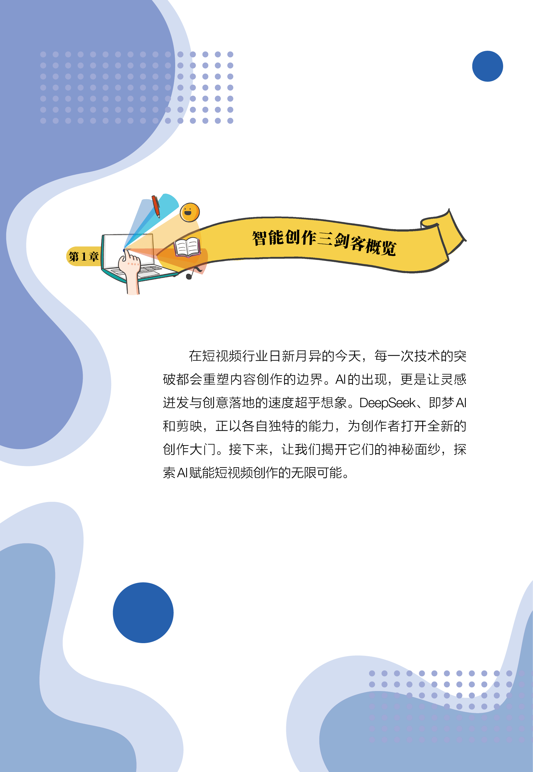 本书聚焦人工智能(Artificial Intelligence,AI)技术赋能短视频创作的全流程,系统介绍DeepSeek、即梦AI、剪映三大智能工具的核心功能与实战应用,为读者提供从创意构思到内容落地的全链路方案。