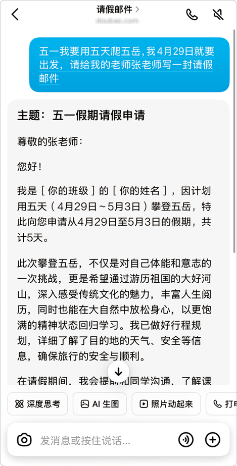 图1-2 小明用豆包写的请假邮件