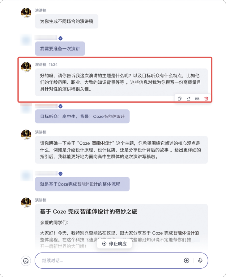 图2-5 Coze智能体“演讲稿”帮你准备演讲