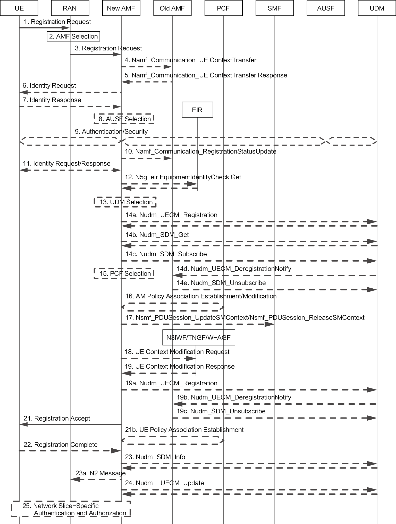 AMF继承MME中NAS(Non-Access Stratum,非接入层)的接入控制功能。