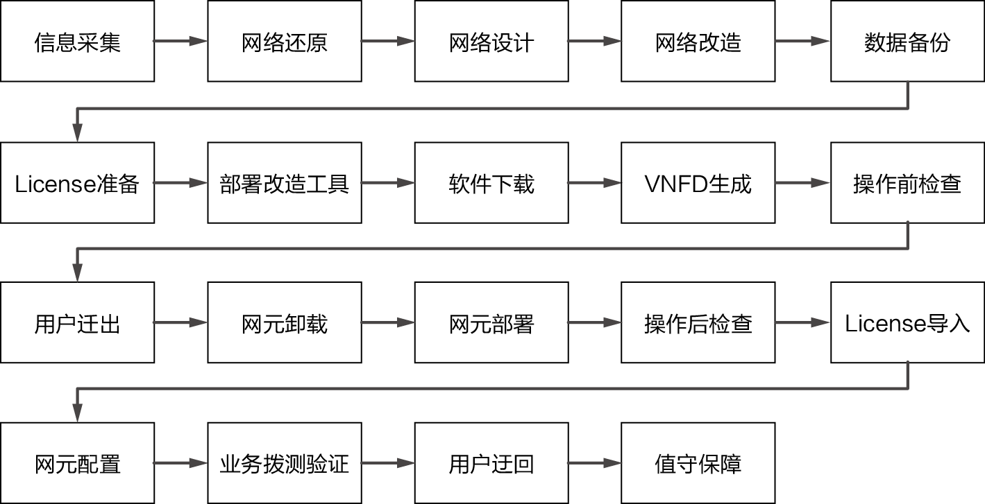缩短TTM。在NFV架构的电信网络中,增加新的业务节点变得异常简单,不再需要复杂的工勘、硬件安装过程。业务部署根据需要申请足够的云化资源(计算/存储/网络资源)之后,安装相应的软件并调测即可。整个过程相对传统电信网元的部署,节省了80%左右的时间。同时,如果需要更新业务逻辑、增加新的业务,也只需要更新软件并部署即可,不再需要传统电信网络中软硬件同步升级甚至更换的复杂操作,真正做到了业务可灵活调整和扩展,大大缩短了TTM,使业务创新变得更加简单。