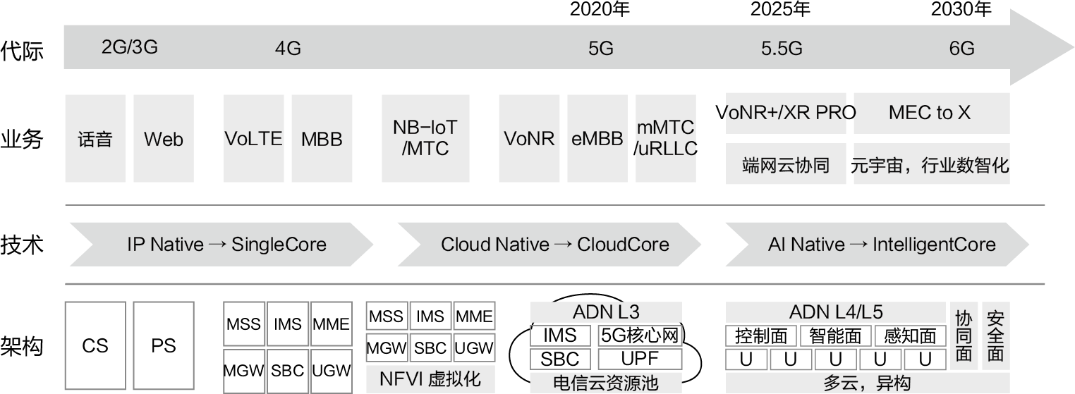 通信网络作为数字社会的神经网络,始终承载着人类文明进步的脉搏。从模拟通信到数字革命,从语音传输到万物智联,核心网默默守护着全球数十亿用户的每一次通话、每一条数据、每一帧影像。在5.5G向6G演进的历史性跨越中,网络架构正经历着云化、智能化和空天一体化的三重变革,传统核心网面临着运维复杂度激增、业务敏捷性不足、体验确定性难以保障等系统性挑战。