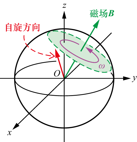 如果将粒子的自旋想象成小球的自转,那么这样的旋转其实就相当于一个陀螺一边自转,一边绕着某个轴“公转”,如图1.36所示。这种运动在物理学中称为进动。而粒子自旋方向在磁场中的进动称为拉莫尔进动(Larmor precession)。