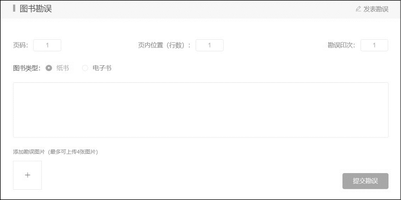 当您发现错误时,请登录异步社区(https://www.epubit.com),按书名搜索,进入本书页面,单击“发表勘误”,输入错误信息,单击“提交勘误”按钮即可(见下图)。本书的作者、译者和编辑会对您提交的错误信息进行审核,确认并接受后,您将获赠异步社区的100积分。积分可用于在异步社区兑换优惠券、样书或奖品。