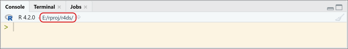 工作目录(working directory),即文件系统中的一个文件夹,与特定工作相关的所有文件都放在此工作目录中,包括数据、R脚本、分析结果以及图形等输出结果。RStudio在控制台左上方显示的路径便是当前工作目录路径[14],见图1-7。