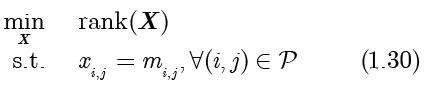 | 定义1.4低秩矩阵补全(low-rank matrix completion) 低秩矩阵补全是指最优化问题