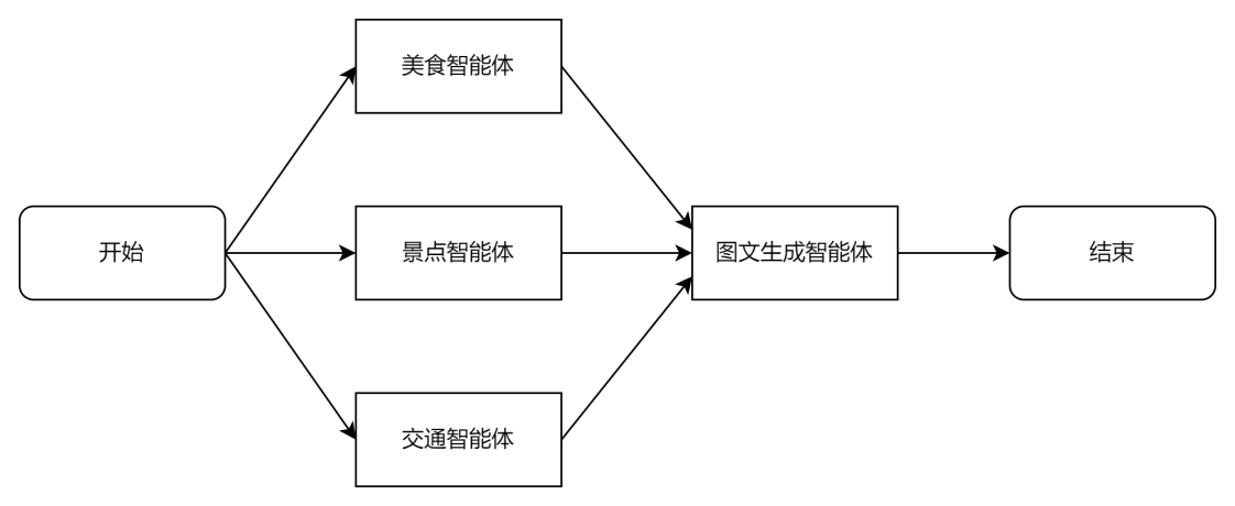 • 工作流会并行运行美食智能体、景点智能体、交通智能体完成三类攻略的撰写。