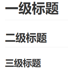 # 一级标题 ## 二级标题 ### 三级标题 #### 四级标题 ##### 五级标题 ###### 六级标题 |
