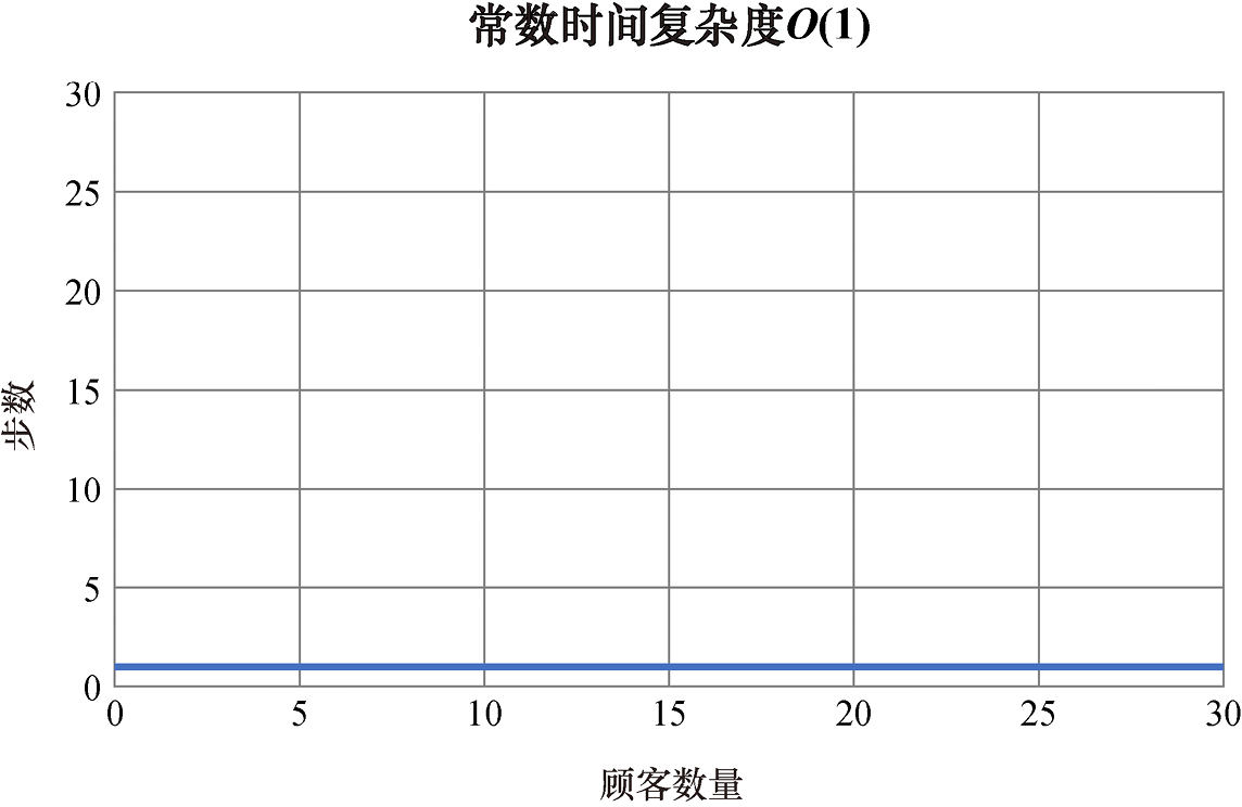 常数时间:无论问题的规模如何,常数时间的算法都需要相同的步数。