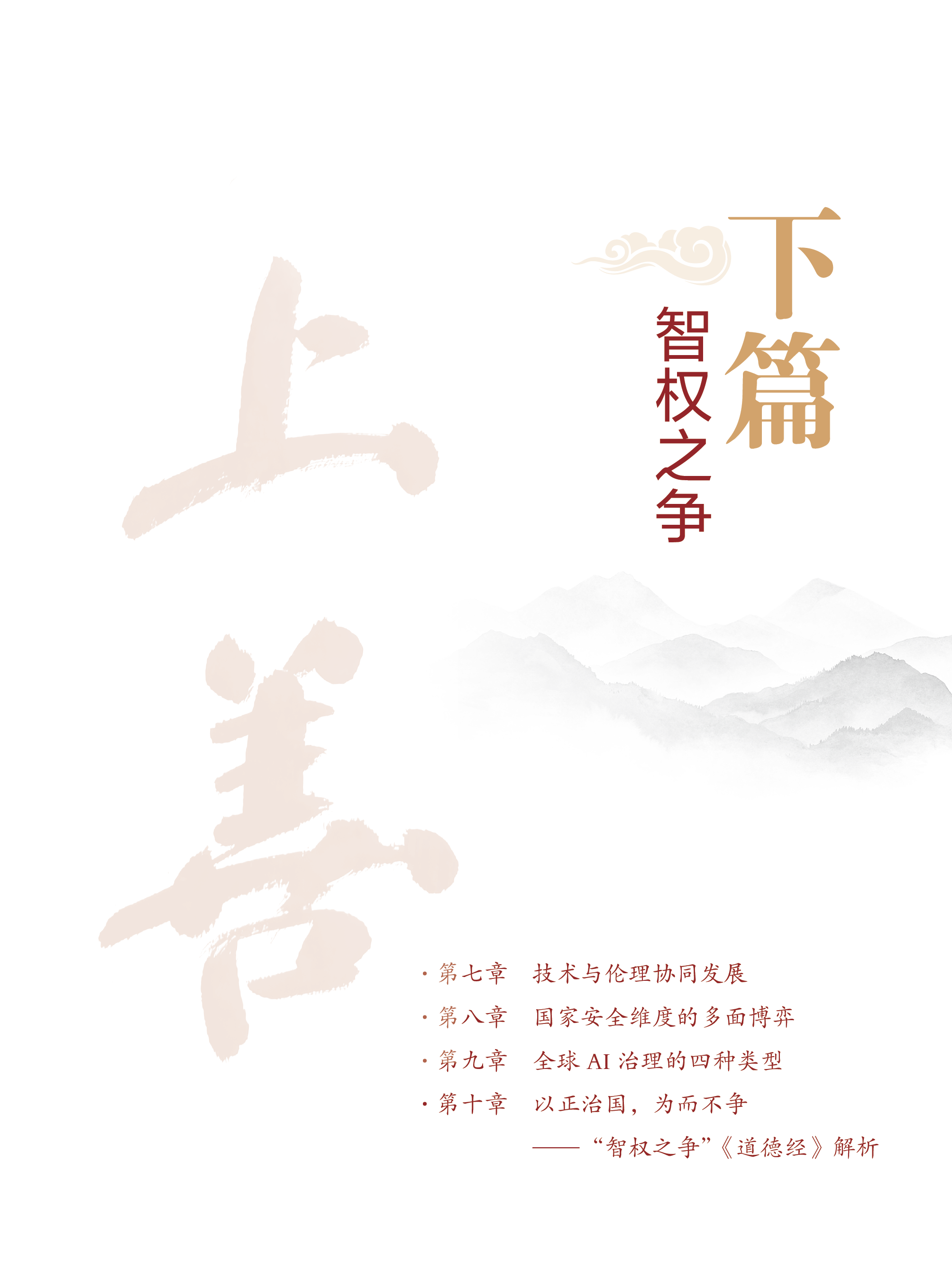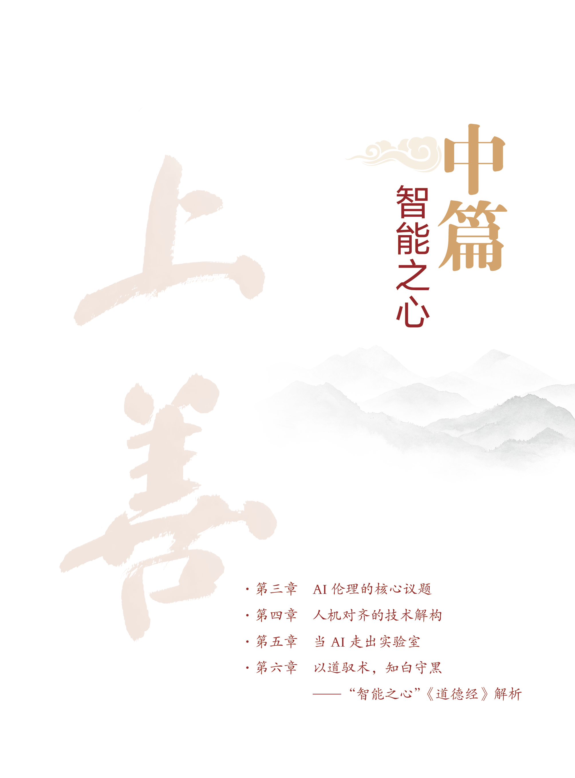 本书除“导读”外,分上、中、下三篇,分别探讨AI伦理挑战、人机对齐技术以及全球AI治理。每篇最后单列一章,以《道德经》智慧进行系统解析,试图让人们在AI技术的激进浪潮与焦虑中,寻得一片宁静的思辨之地,在文明的十字路口找到通向上善AI的智慧之路。